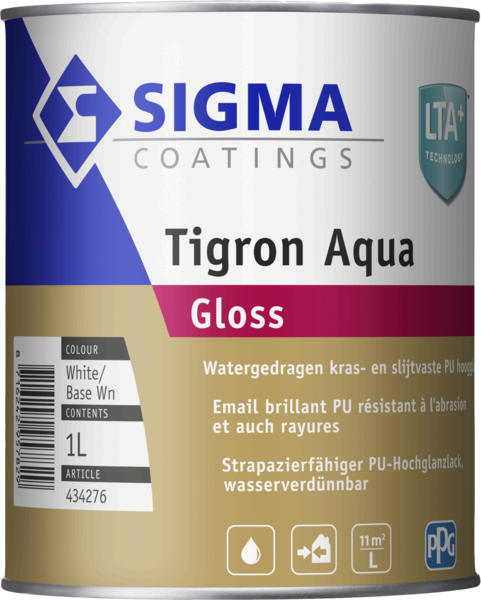 Sigma Tigron Aqua Gloss est une laque brillante en phase aqueuse, résistante aux rayures et à l’usure, pour l’intérieur et l’extérieur, à base d’émulsion polyuréthane-alkyde. Elle offre une très haute résistance aux graisses de contact, à la saleté et aux produits de nettoyage ménagers, avec une brillance optimale et durable, un excellent tendu et un aspect uniforme. La peinture est faiblement odorante, facile à appliquer, dotée d’un long temps ouvert, d’un bon pouvoir couvrant, d’une bonne ponçabilité et d’une excellente élasticité, pour un résultat final très esthétique.