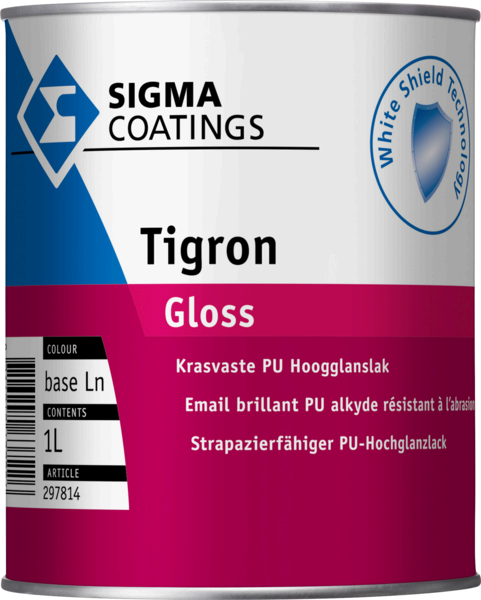 Sigma Tigron Gloss est une laque brillante en phase solvantée, résistante aux rayures et à l’usure, pour l’intérieur et l’extérieur, à base de polyuréthane-alkyde. Elle offre une brillance optimale et durable ainsi qu’une excellente résistance extérieure. La peinture a été testée pour sa résistance bactérienne par l’Université de Gand et présente une grande résistance aux rayures et à l’abrasion. Elle couvre très bien, s’applique facilement, peut être utilisée jusqu’à 0°C et se nettoie très aisément. Elle est conforme à la directive européenne 2002/72/CE relative au contact alimentaire.