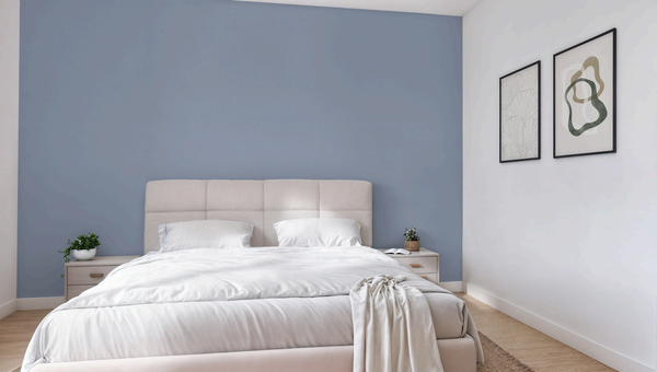 Flux è un blu-viola saturo, neutro e armonioso, con un sottotono prugna. Questo colore è perfetto per un accento in una stanza studio. Da abbinare a pareti grigio chiaro e accenti dorati.