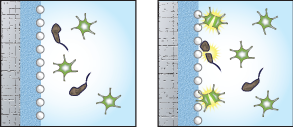 La componente chiave del prodotto è l’argento. A differenza di molte pitture antibatteriche che utilizzano agenti chimici per bloccare i germi, Sigmaresist Immun Matt contiene particelle di argento che formano parte del film, impediscono il moltiplicarsi dei microrganismi e agiscono in maniera mirata contro germi e batteri. Tali batteri, a contatto con la parte superficiale della finitura di rivestimento, vengono decomposti dalle particelle di argento, che ne impediscono anche la diffusione. Le particelle di argento sono presenti su tutta la superficie del rivestimento e sono sempre attive, fin dal primo contatto con germi e batteri.