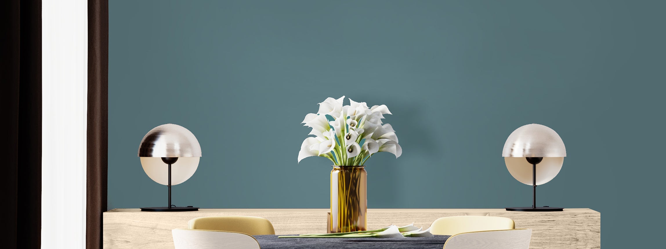 Vining Ivy vervlecht krachtig blauw met verfijnd groen in een kleur die doet denken aan verkoelende, diepe wateren. De zachte jade-ondertoon in combinatie met het blauw geeft een kalmerend effect, terwijl de sterkere smaragd-ondertonen juist zorgen voor een energie-boost. De combinatie van het blauw en groen creëert een rijke, trendy kleur die het goed doet in elk interieur en zelfs buiten zorgt voor een gebalanceerd kleuraccent. In combinatie met diepere houttinten en gebroken wit geeft het een natuurlijk effect, terwijl de combinatie met donkere tinten en gouden accenten juist een gevoel van luxe creëert.